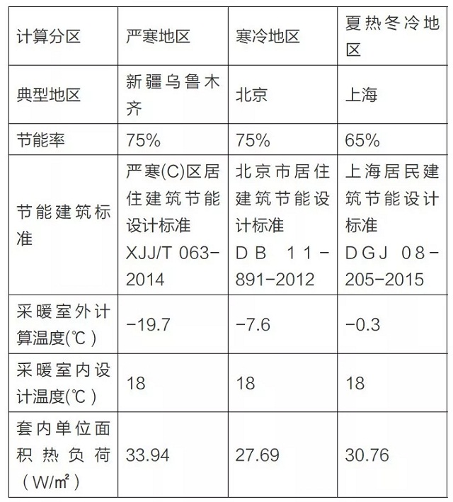 表1:典型地區節能建筑套內單位面積熱負荷匯總表