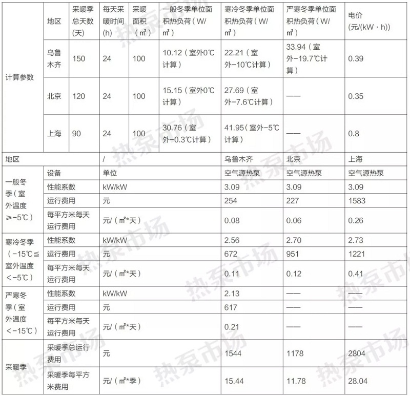 北京、上海,新疆烏魯木齊、100平米空氣源熱泵供暖單采暖季要多少錢?