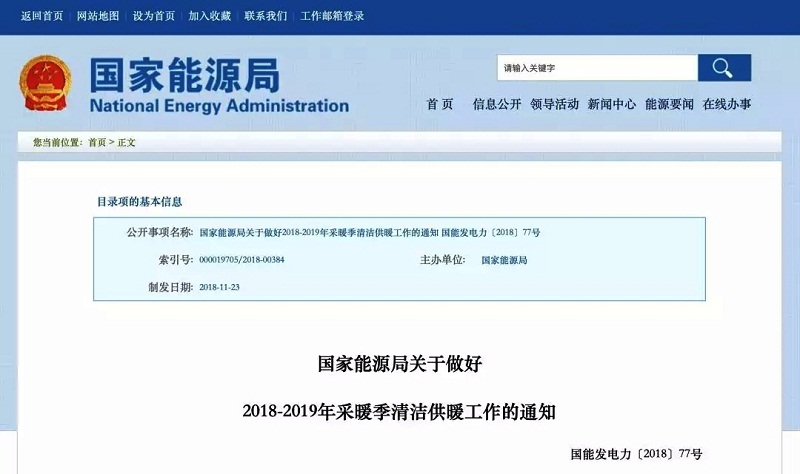 國家能源局關于做好2018-2019年采暖季清潔供暖工作的通知