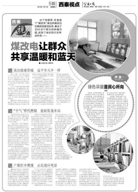 寶雞日報:"煤改氣"易氣荒不現實,煤改空氣源熱泵滿足供暖需求